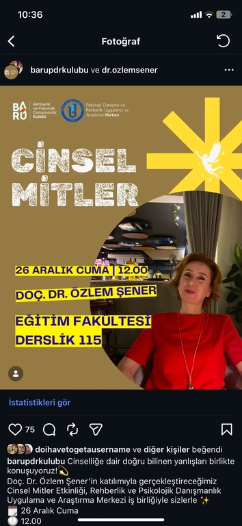 Cinselliğe dair doğru bilinen yanlışları birlikte konuşuyoruz! Doç. Dr. Özlem Şener’in katılımıyla gerçekleştireceğimiz Cinsel Mitler etkinliği, Rehberlik ve Psikolojik Danışmanlık Uygulama ve Araştırma Merkezi iş birliğiyle sizlerle. Etkinlik 26 Aralık Cuma, 12.00, Eğitim Fakültesi – Derslik 115 numaralı derslikte gerçekleştirilecektir.
