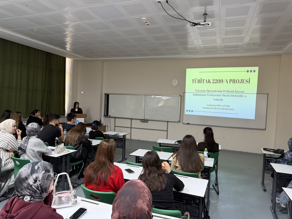 “Üniversite Öğrencilerinde Problemli İnternet Kullanımının Yordayıcıları Olarak Dürtüsellik ve Yalnızlık” başlıklı proje, öğrenci araştırmacı Melis Asel Yıldız tarafından, danışmanlığını Dr. Öğr. Üyesi Berkan Demir’in yürüttüğü bir akademik süreçte gerçekleştirildi. Araştırma kapsamında, üniversite öğrencilerinin internet kullanım davranışları ile dürtüsellik ve yalnızlık düzeyleri arasındaki ilişkiler incelendi.